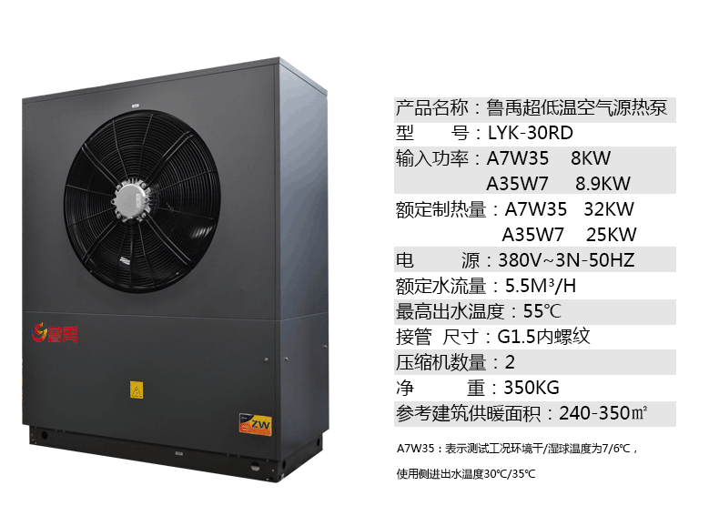 魯禹家用空氣源熱泵供暖機(jī)組由壓縮機(jī)、冷凝器、膨脹閥、蒸發(fā)器等部件組成。在室外熱能轉(zhuǎn)移過程中,每消耗1份電能,就可以為室內(nèi)提供4份的熱量(根據(jù)不同運(yùn)行狀態(tài),該值也會(huì)有所不同)。