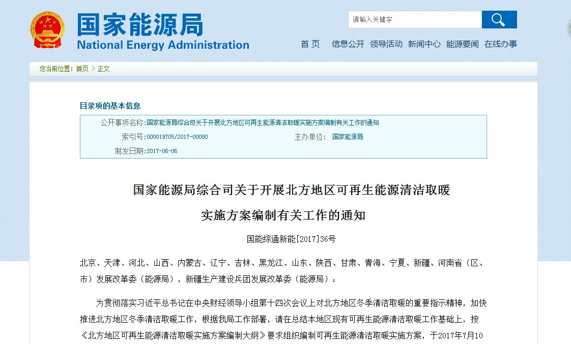 各地區(qū)要根據(jù)當(dāng)?shù)刭Y源優(yōu)勢和取暖需求,按集中供暖與分散取暖相結(jié)合的原則,確定適合當(dāng)?shù)貙?shí)際的主推的可再生能源供暖方式。提出2017-2021年可再生能源清潔取暖的重大工程,列出各地區(qū)今年啟動(dòng)的可再生能源清潔取暖工程,爭取一部分工程在2017年度供暖季前完工投入使用。
