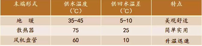 空氣源熱泵出水溫度一般可達(dá)到45℃,溫差5℃,所以,更適合空氣源熱泵的供暖末端形式是地暖。