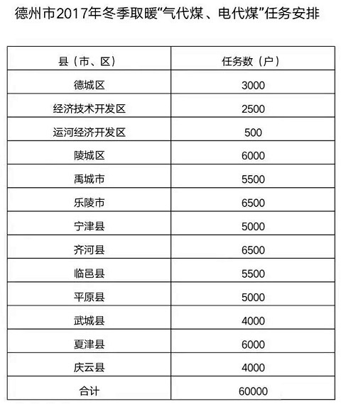 德州是中國太陽城、中國功能糖城、中國優(yōu)秀旅游城市以及國家交通運輸主樞紐城市,近年來不斷在改善生態(tài)環(huán)境、治理大氣污染工作上取得實質(zhì)性進(jìn)展。德州作為山東傳輸通道重點城市之一,在2017年民用煤改6萬戶的基礎(chǔ)上再度增加數(shù)量預(yù)計8-10萬戶,預(yù)計2018年綜合取暖改造將達(dá)到15萬戶(單位)以上。