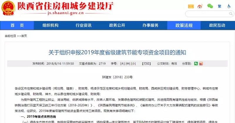 2018年8月15日,陜西省住房和城鄉(xiāng)建設(shè)廳、陜西省財政廳印發(fā)《關(guān)于組織申報2019年度省級建筑節(jié)能專項資金項目的通知》,指出2019年度省級建筑節(jié)能資金重點支持綠色生態(tài)技術(shù)應(yīng)用項目,包括中深層地?zé)崮懿膳夹g(shù)等,綠色生態(tài)城區(qū)建設(shè)試點示范;建筑能效提升,包括農(nóng)村建筑節(jié)能改造技術(shù)、農(nóng)村清潔能源取暖技術(shù)、低能耗建筑技術(shù);技術(shù)集成創(chuàng)新,上述兩個類別項目實施中,聚焦新技術(shù)新產(chǎn)品推廣所面臨的問題,同步開展工程應(yīng)用研究的項目。申請“先建后補(bǔ)、以獎代補(bǔ)”等方式的綠色建筑項目、省級建筑節(jié)能資金支持項目,應(yīng)嚴(yán)格按照經(jīng)審查的工程方案、申報方案進(jìn)行施工并完成全部技術(shù)內(nèi)容且竣工驗收合格。