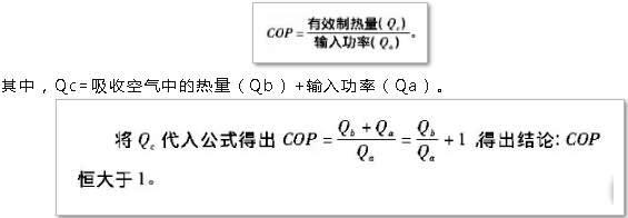 空氣作為可再生能源是取之不盡、用之不竭的天然資源。而熱泵技術(shù)是利用輸入少量的電能,從空氣中獲得高于輸入電能2倍~5倍的熱能來(lái)加熱被加熱對(duì)象,實(shí)現(xiàn)供熱的目的?諝庠礋岜霉ぷ髦形】諝庵械臒崃渴敲赓M(fèi)的,而輸出的熱能是以它為主的,根據(jù)熱泵制熱性能系數(shù)公式: