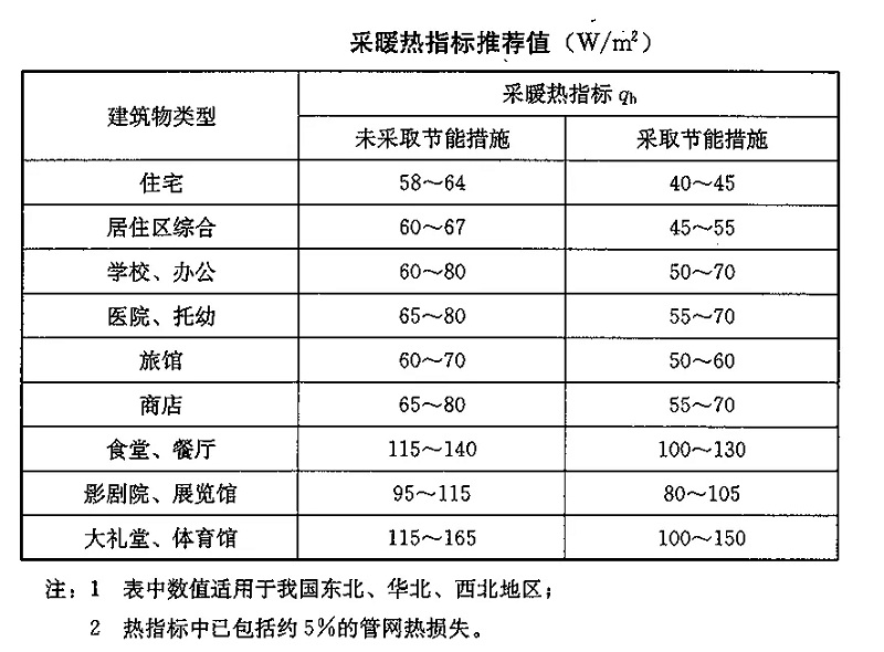據(jù)了解,該項目室外計算參數(shù)取自《采暖通風(fēng)與空氣調(diào)節(jié)設(shè)計規(guī)范》GBJ50019(2001年版)供暖計算依據(jù):依據(jù)《城鎮(zhèn)供熱管網(wǎng)設(shè)計規(guī)范》CJJ34-2010采暖熱指標(biāo)推薦值q(W/m2)。同時,供暖所需熱能選擇,根據(jù)以下設(shè)計指標(biāo)和經(jīng)驗值,熱負(fù)荷指標(biāo)取設(shè)計指標(biāo)的70%左右設(shè)計。