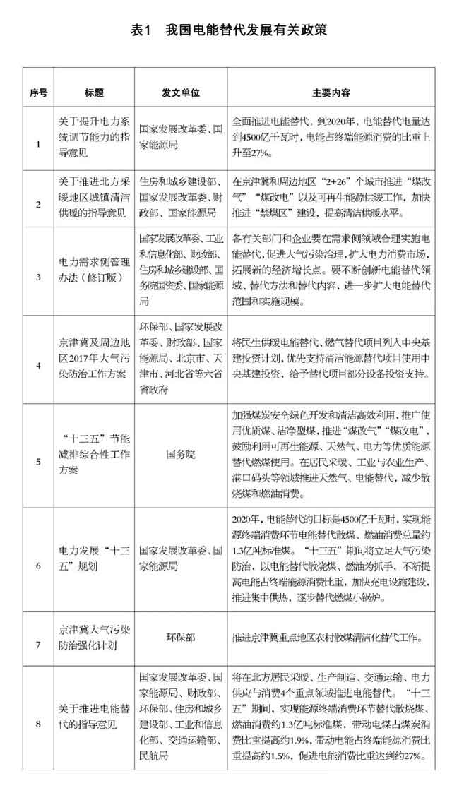 黨中央、國務(wù)院高度重視電能替代工作,2016年5月,國家八部委出臺了推進電能替代的指導(dǎo)意見,將電能替代上升為國家戰(zhàn)略。相關(guān)部委先后出臺了支持北方地區(qū)冬季清潔取暖試點、推進京津冀及周邊地區(qū)大氣污染防治等支持政策,將電能替代作為國家“十三五”電力發(fā)展規(guī)劃和現(xiàn)代綜合交通運輸體系發(fā)展規(guī)劃的重要內(nèi)容,為電能替代發(fā)展營造了良好的政策環(huán)境。