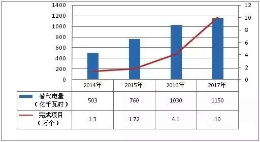 相關(guān)資料統(tǒng)計,僅從當前技術(shù)可行性考慮,我國電能替代潛力空間約2.2萬億千瓦時,其中“煤改電”“油改電”潛力分別為18000億千瓦時、4000億千瓦時;預(yù)計2020年電能替代規(guī)模有可能超過6000億千瓦時。