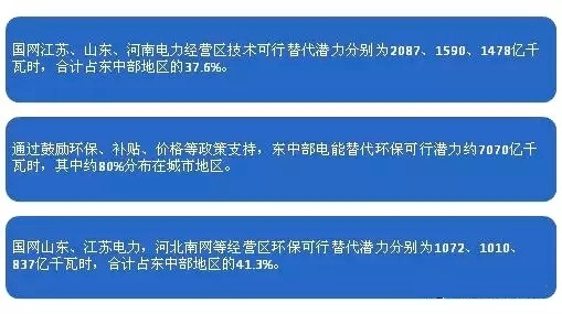 若只考慮技術(shù)可行,不考慮經(jīng)濟性,東中部電能替代技術(shù)可行潛力約1.37萬億千瓦時,其中約70%分布在城市地區(qū)。