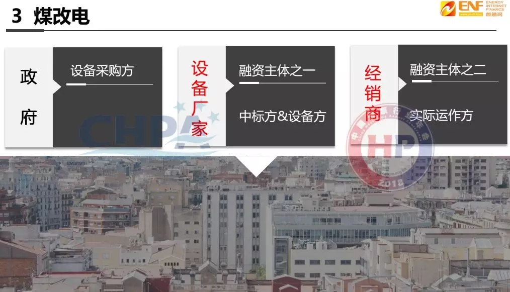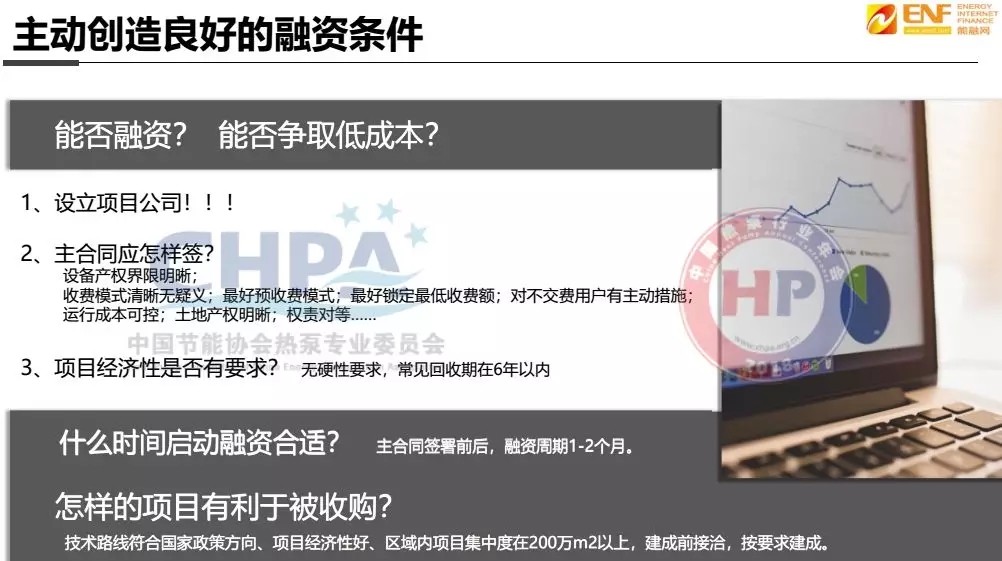 其次,我們還要看投資方,投資方到目前為止五花八門,一般有設備方、經(jīng)銷商、傳統(tǒng)的熱力公司、新能源公司等,主要對投資方的要求是要有項目公司,要具備運營經(jīng)驗,并且要出30%的保證金。