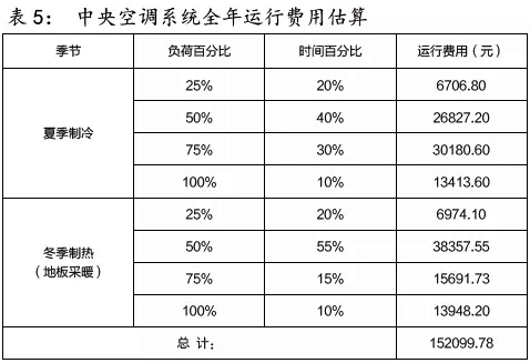 根據(jù)該項(xiàng)目特點(diǎn),中央空調(diào)系統(tǒng)運(yùn)行時(shí)間:制冷季按100天、采暖季90天計(jì)算;運(yùn)行時(shí)間:制冷季空調(diào)每天運(yùn)行12小時(shí),采暖季每天運(yùn)行14小時(shí);電費(fèi)按0.9元/kWh(商用電)計(jì)算。